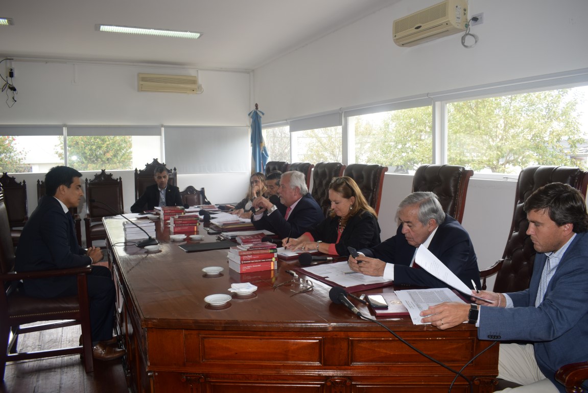 El presidente de la Corte, Guillermo Catalano, junto a los consejeros durante las entrevistas a los concursantes.