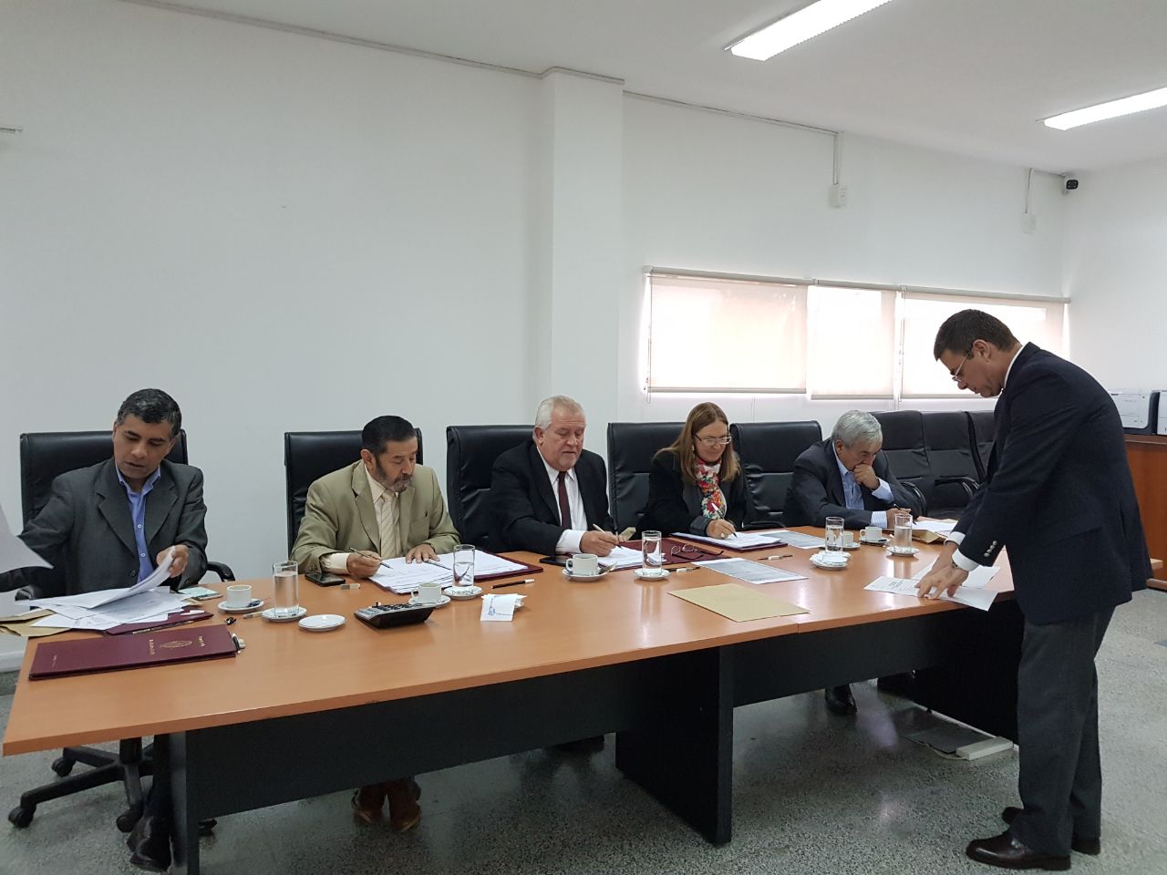 El presidente de la Corte, Guillermo Catalano, junto a los consejeros, durante las entrevistas a los profesionales interesados en cubrir