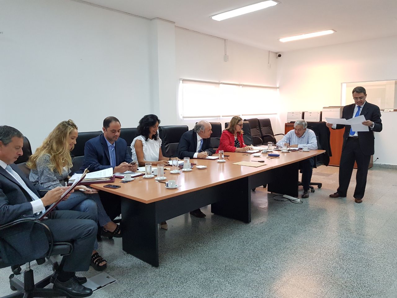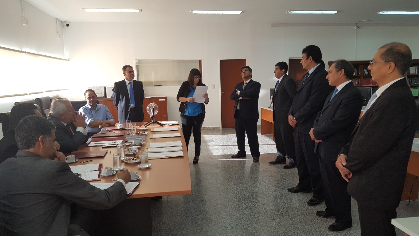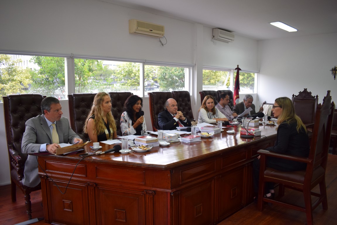 El tribunal evaluador, encabezado por el juez de la Corte y presidente del Consejo, Abel Cornejo, durante la reunión informativa