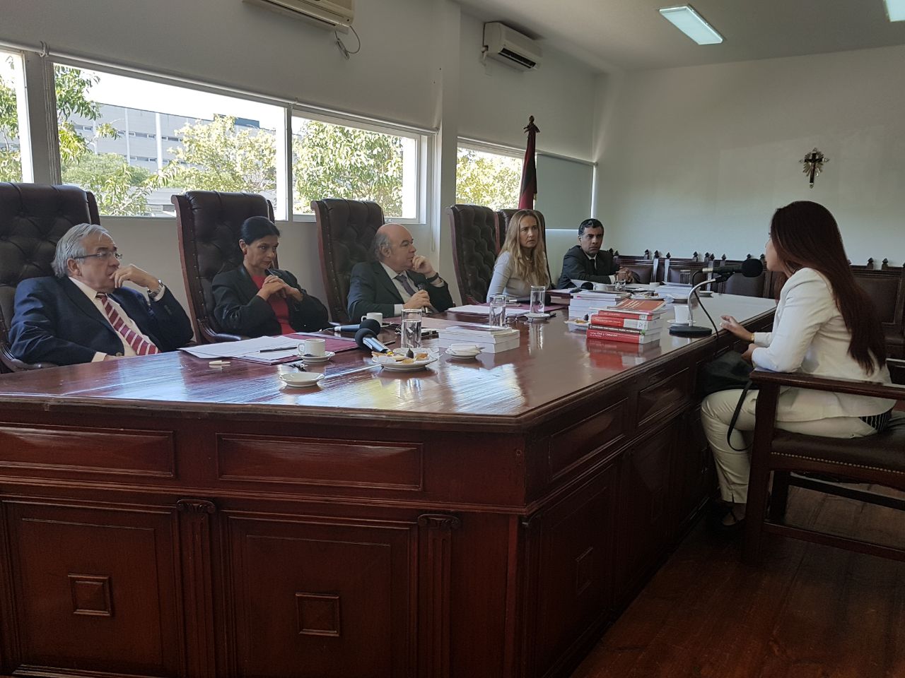 El juez de la Corte y presidente del Consejo, Abel Cornejo, junto a los miembros del tribunal entrevistaron en las