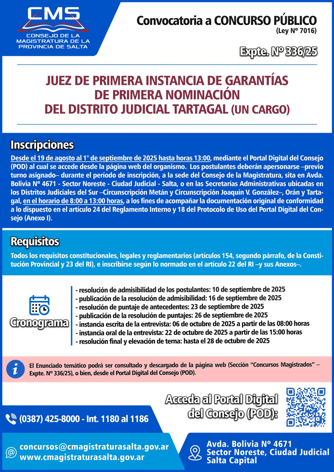 Convocatoria a Concurso Público para cubrir ocho cargos de magistrados del Poder Judicial y del Ministerio Público