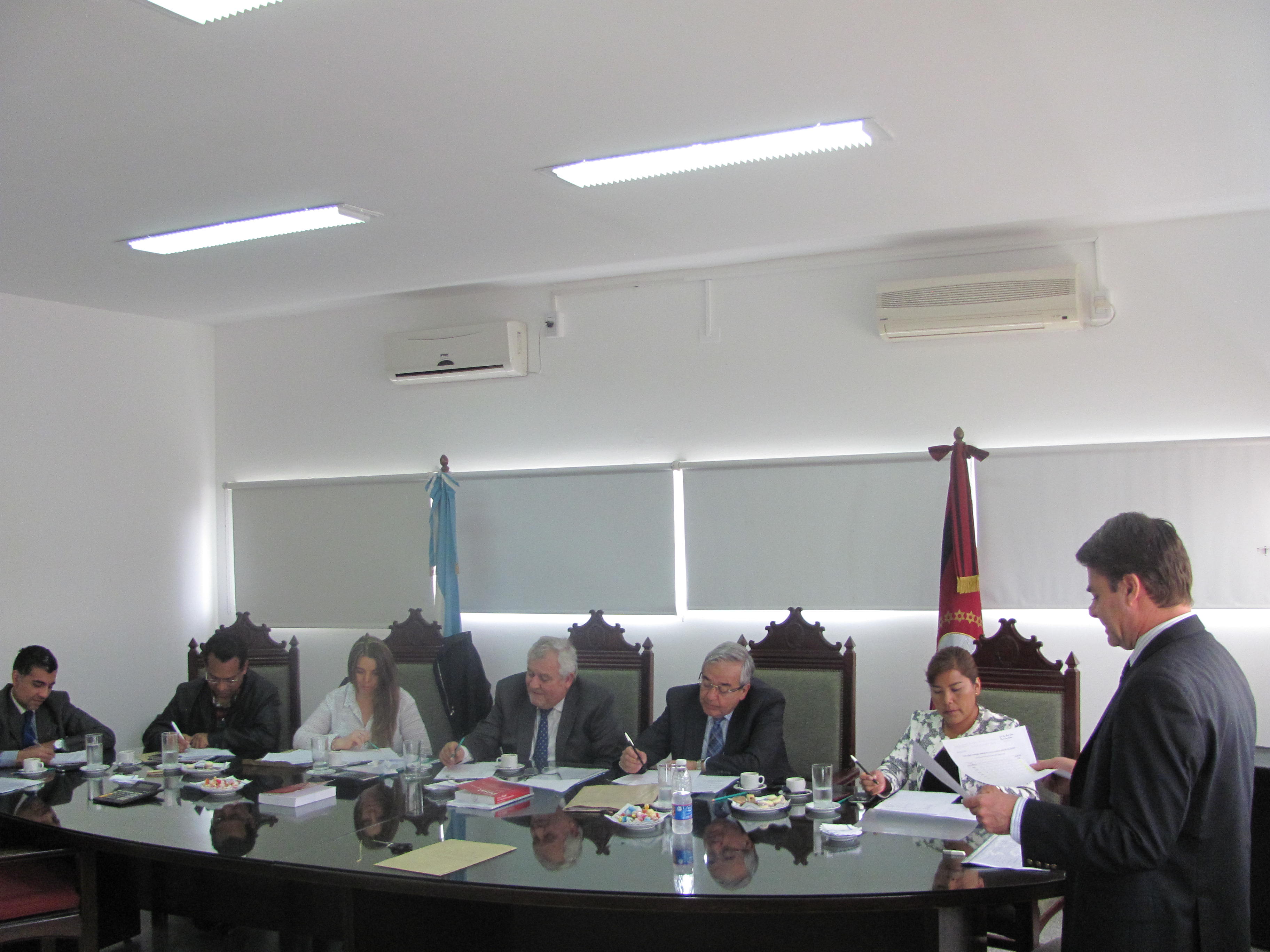 El juez de la Corte, Guillermo Catalano, junto a los consejeros durante la reunión en la que con el sistema
