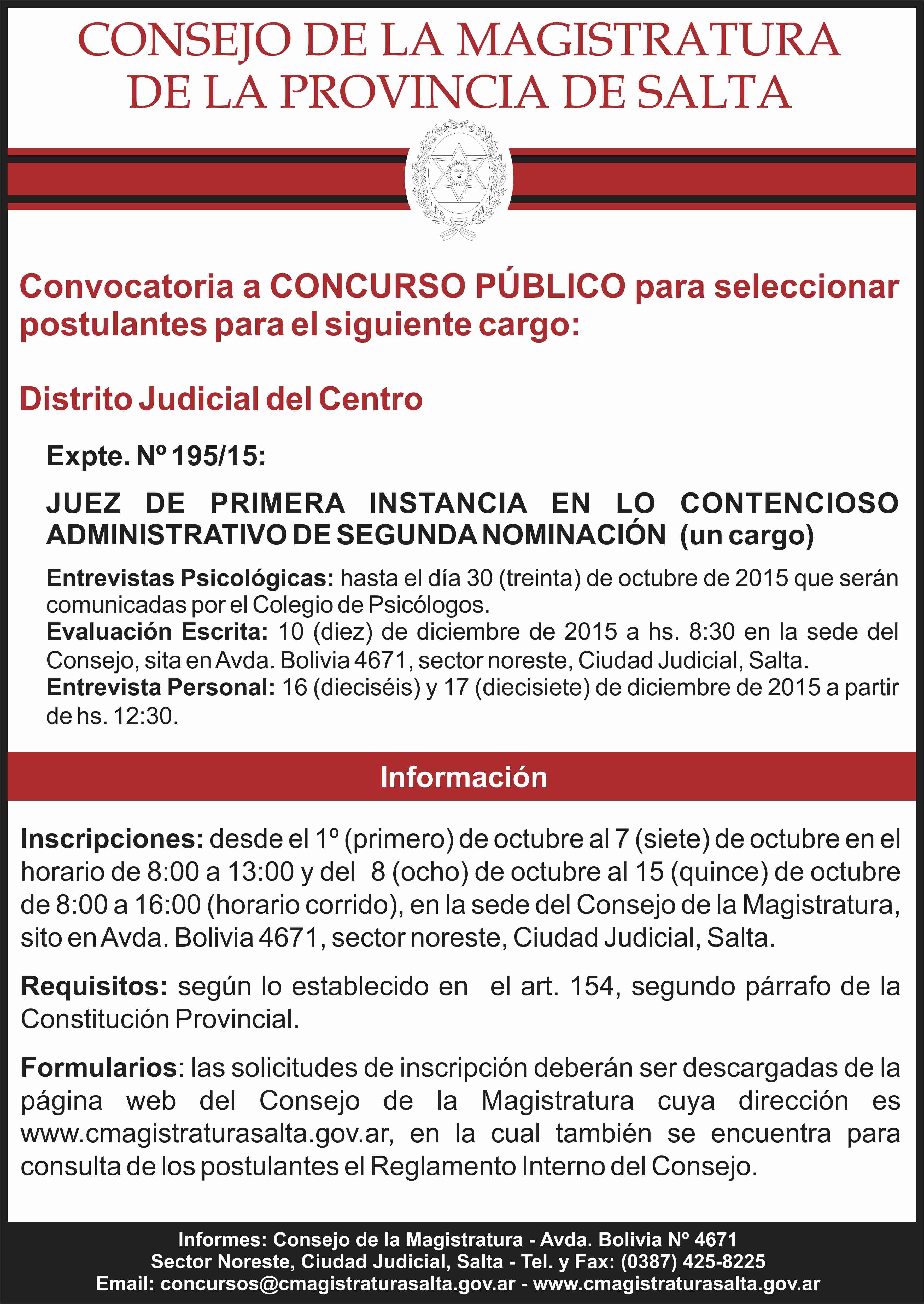 Concurso para cubrir un cargo de Juez de Primera Instancia en lo Contencioso Administrativo de 2ª Nominación