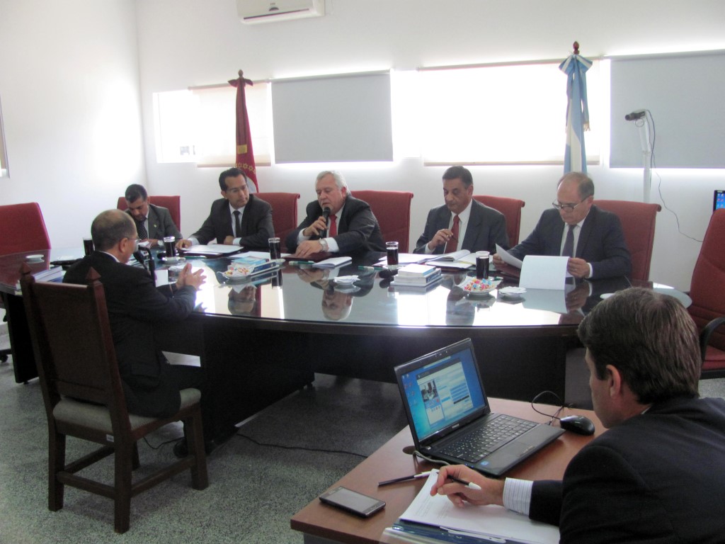 El juez de la Corte y consejero, Guillermo Catalano, junto a los miembros del tribunal evaluador, durante las entrevistas a