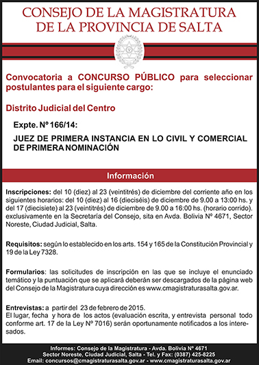 Juez de Primera Nominación en lo Civil y Comercial del Distrito Centro