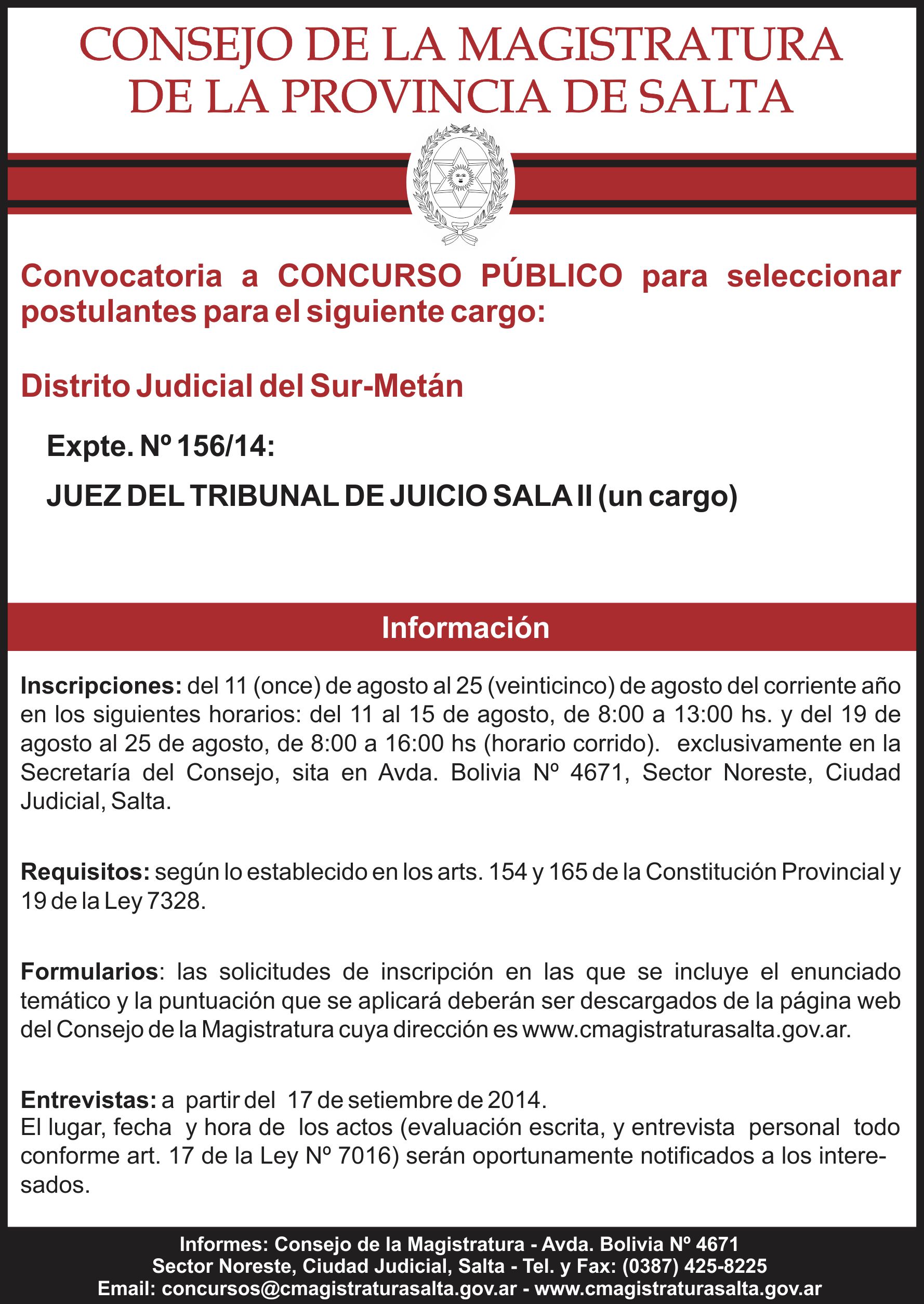 Llamado a concurso para cubrir un cargo de juez en Metán